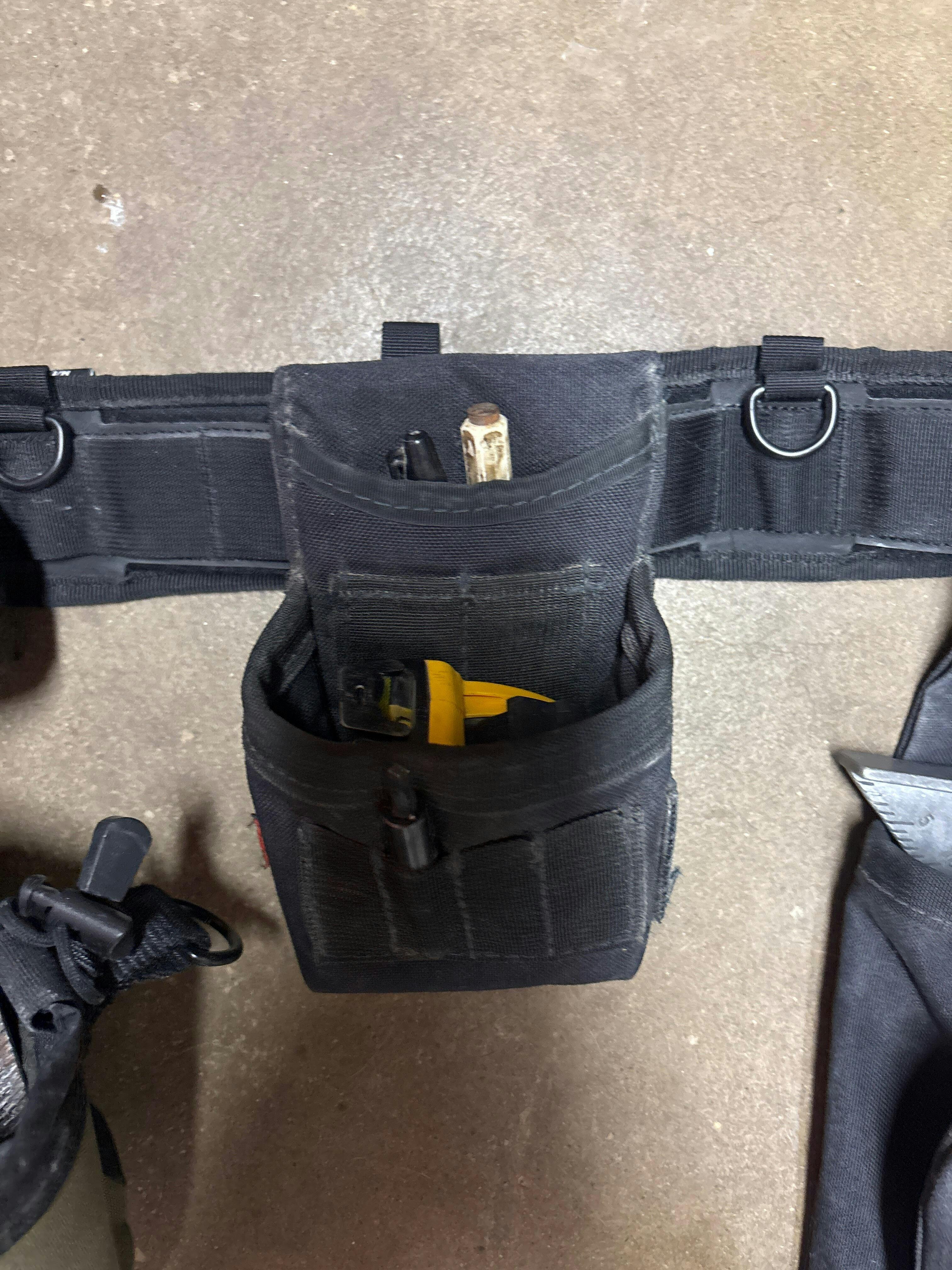 - Open pouch sized for fasteners, small glue bottle, or 35’ tape