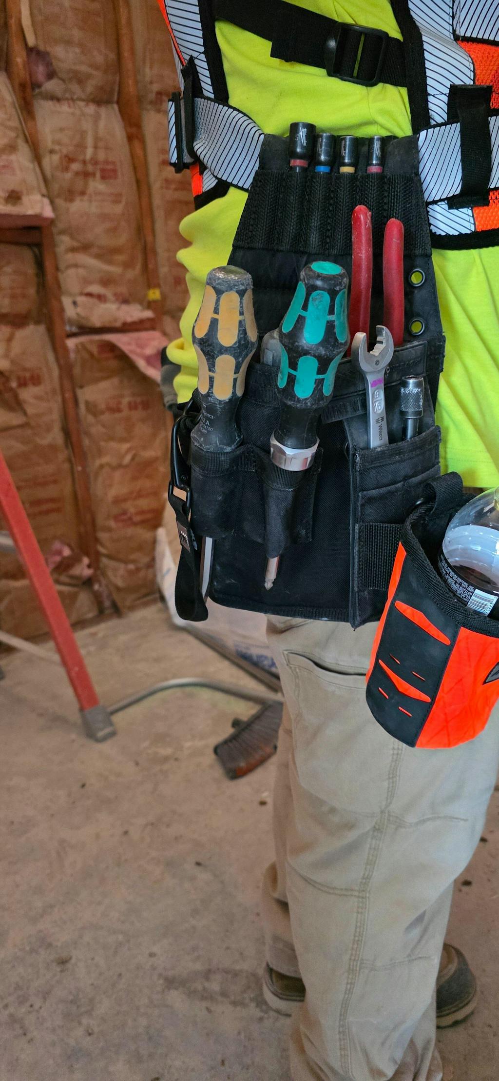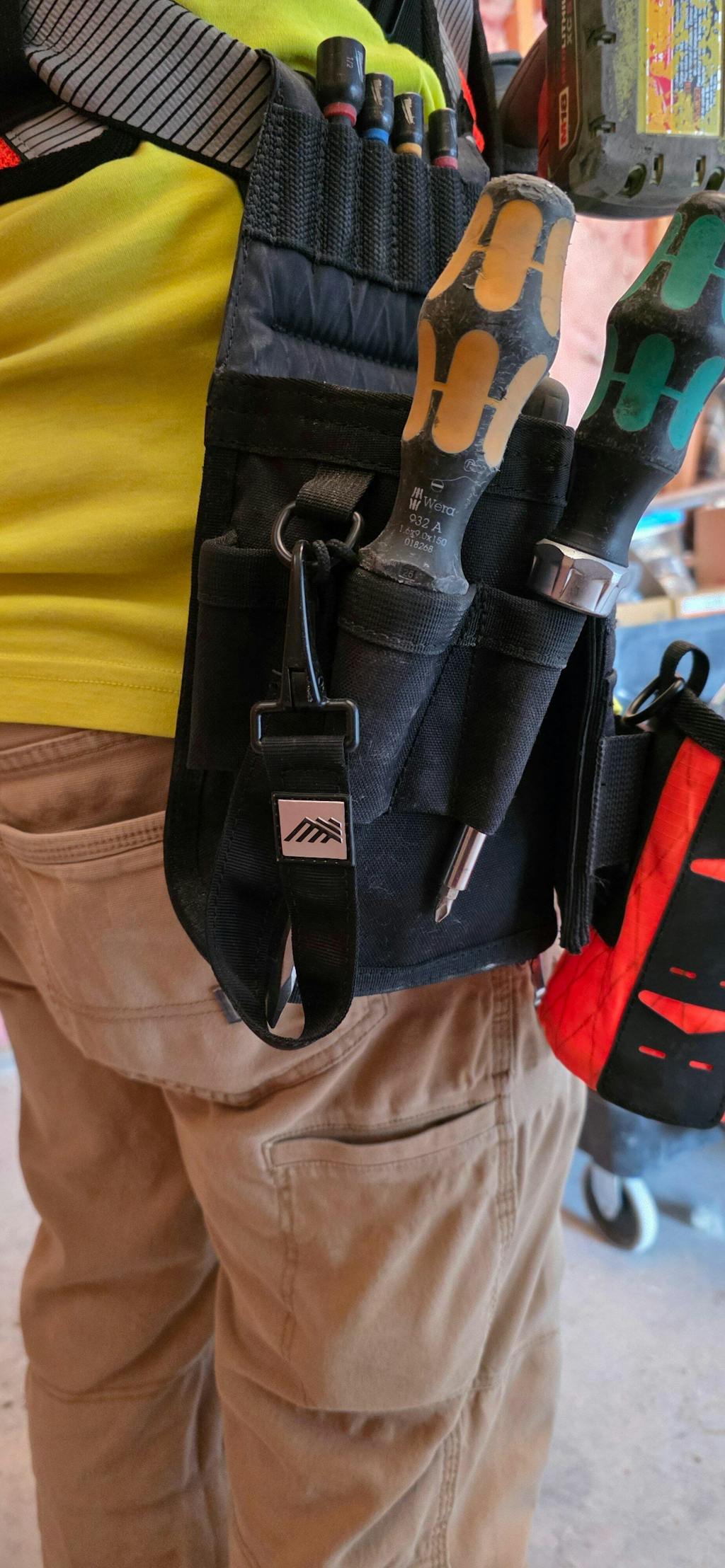 The Mini Niko X takes everything you love about the original Mini Niko and makes it smarter, tougher, and more versatile. A redesigned, removable tape loop, long bit storage, and an extra D-ring expand your options on the job. The 5-slot bit index keeps essentials organized, while DX9 Tech fabric on the back reduces abrasion against your pants or leg. With dedicated storage for drivers, lineman pliers, and cutters, plus an open main pocket with divider for testers, connectors, or fasteners, the Mini Niko X is built to increase efficiency and keep your everyday carry organized.