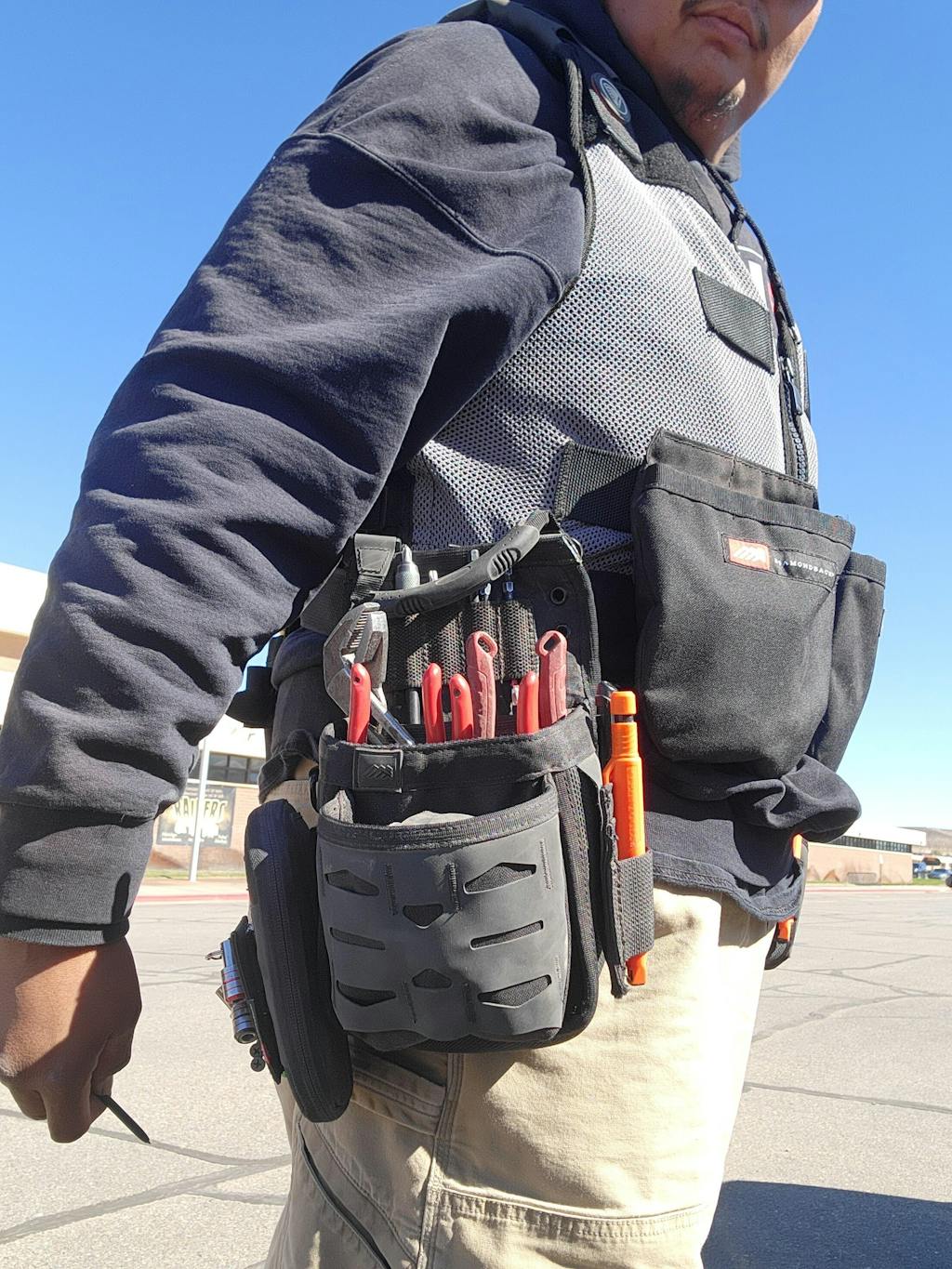 If you like the classic Flux pouch, you will love the double-clip Flux X. We added additional tool organization to the main pouch as well as lining the back with DX9™ Tech Fabric to minimize abrasion to the leg. Utilize the HypaLock™ Grid on the front or side to store tools or add Diamondback clip-on accessories. We even added a D-ring for tape loop or tool tether!