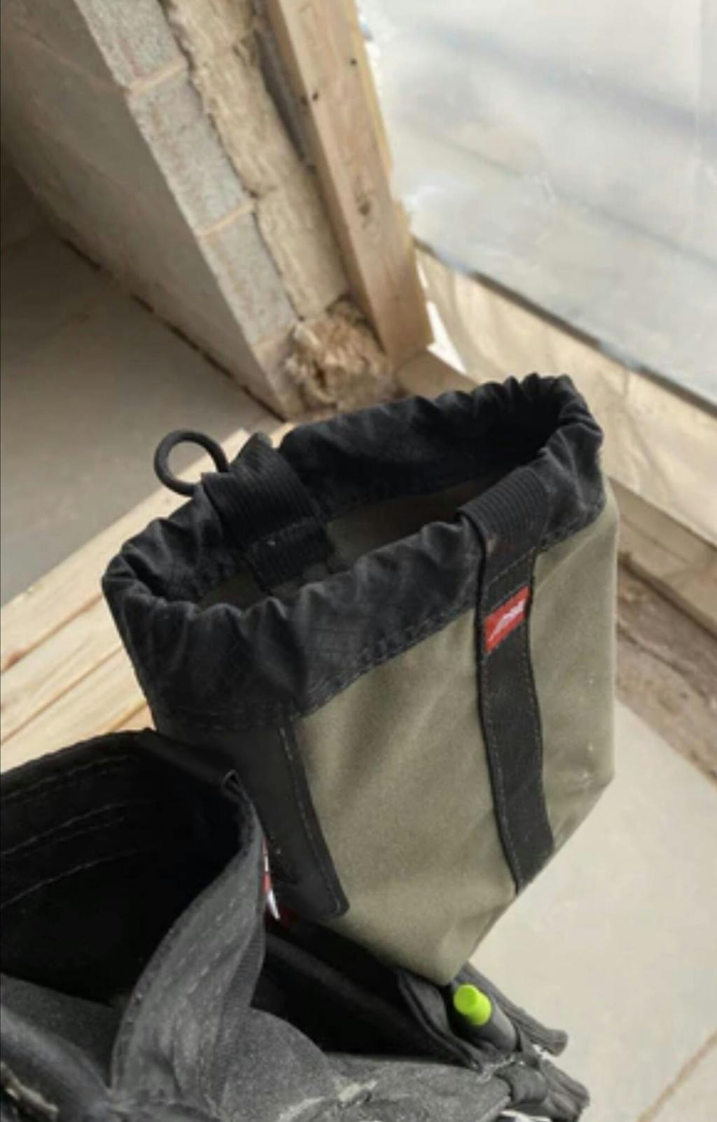 Use the DB Sax to secure extra fasteners or other bulky materials that don't quite fit in your pouches like shims, bolts, electrical outlets or plumbing connections. The Standard Size DB Sack easily clips to your belt or pouches with a belt clip. Unhook the bag and hang it on the wall of your trailer until you need it again.