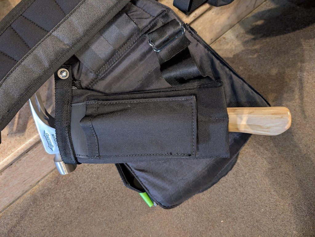 Carry a hammer and prybar safely tucked away behind your pouch with the new Hammer Holster X. The integrated open-bottom utility sheath gives you more carrying capacity. The updated design is less lengthy, so it is more compatible with all size Diamondback pouches.