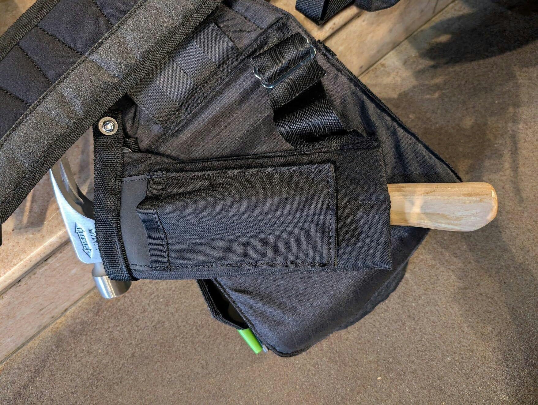 Carry a hammer and prybar safely tucked away behind your pouch with the new Hammer Holster X. The integrated open-bottom utility sheath gives you more carrying capacity. The updated design is less lengthy, so it is more compatible with all size Diamondback pouches.