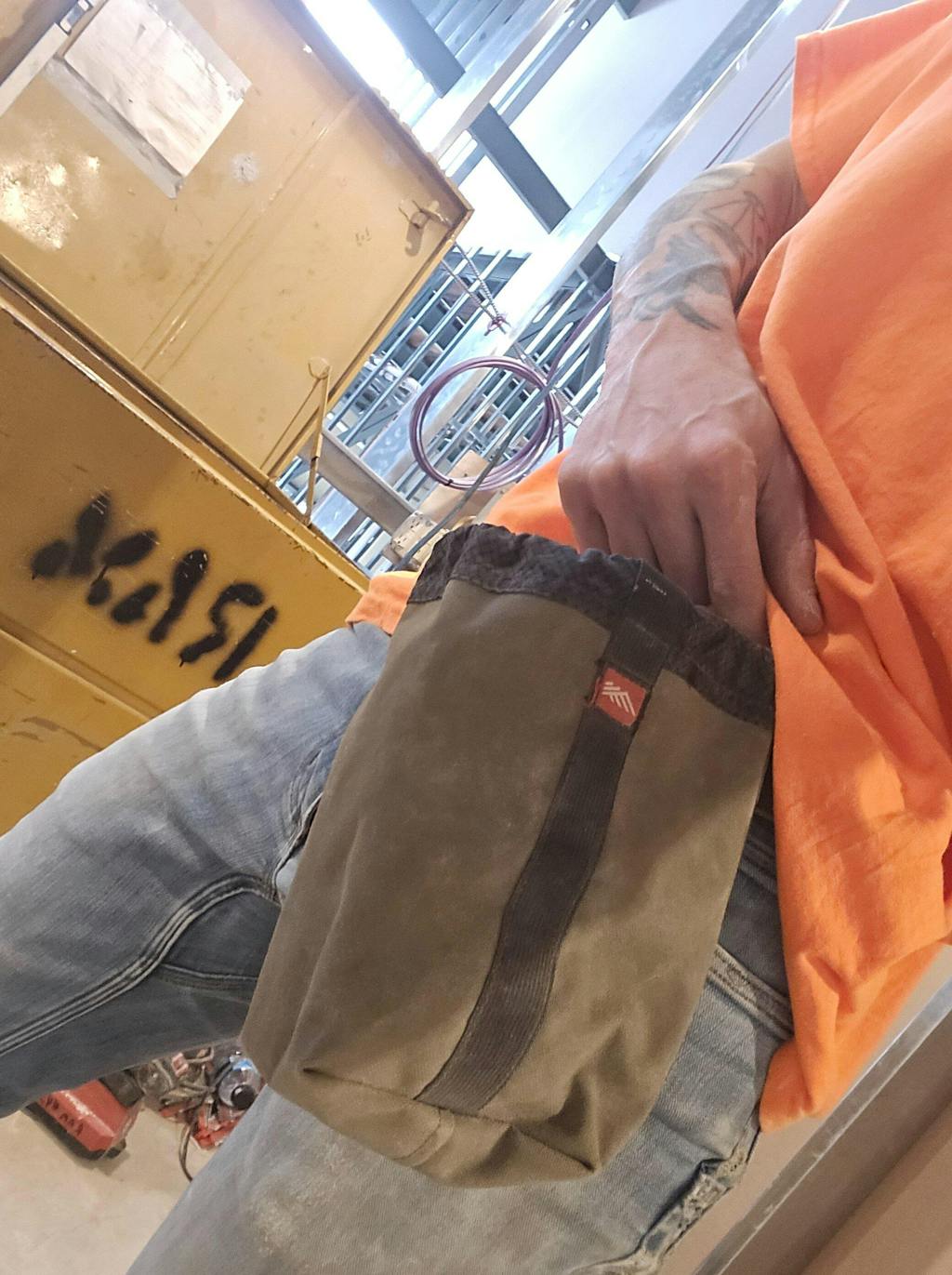 Use the DB Sax to secure extra fasteners or other bulky materials that don't quite fit in your pouches like shims, bolts, electrical outlets or plumbing connections. The Standard Size DB Sack easily clips to your belt or pouches with a belt clip. Unhook the bag and hang it on the wall of your trailer until you need it again.