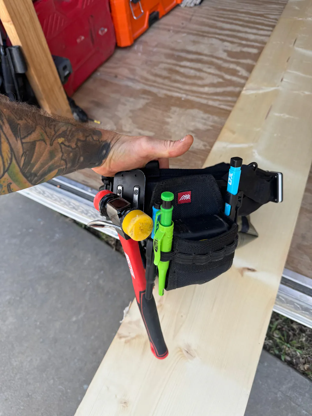 The Easy-Release Tape Holster – Deluxe is sized perfectly for a 35' tape. The custom 2” spring steel DB HD Clip makes attaching it to a tool belt, pouch or pants belt hassle-free.