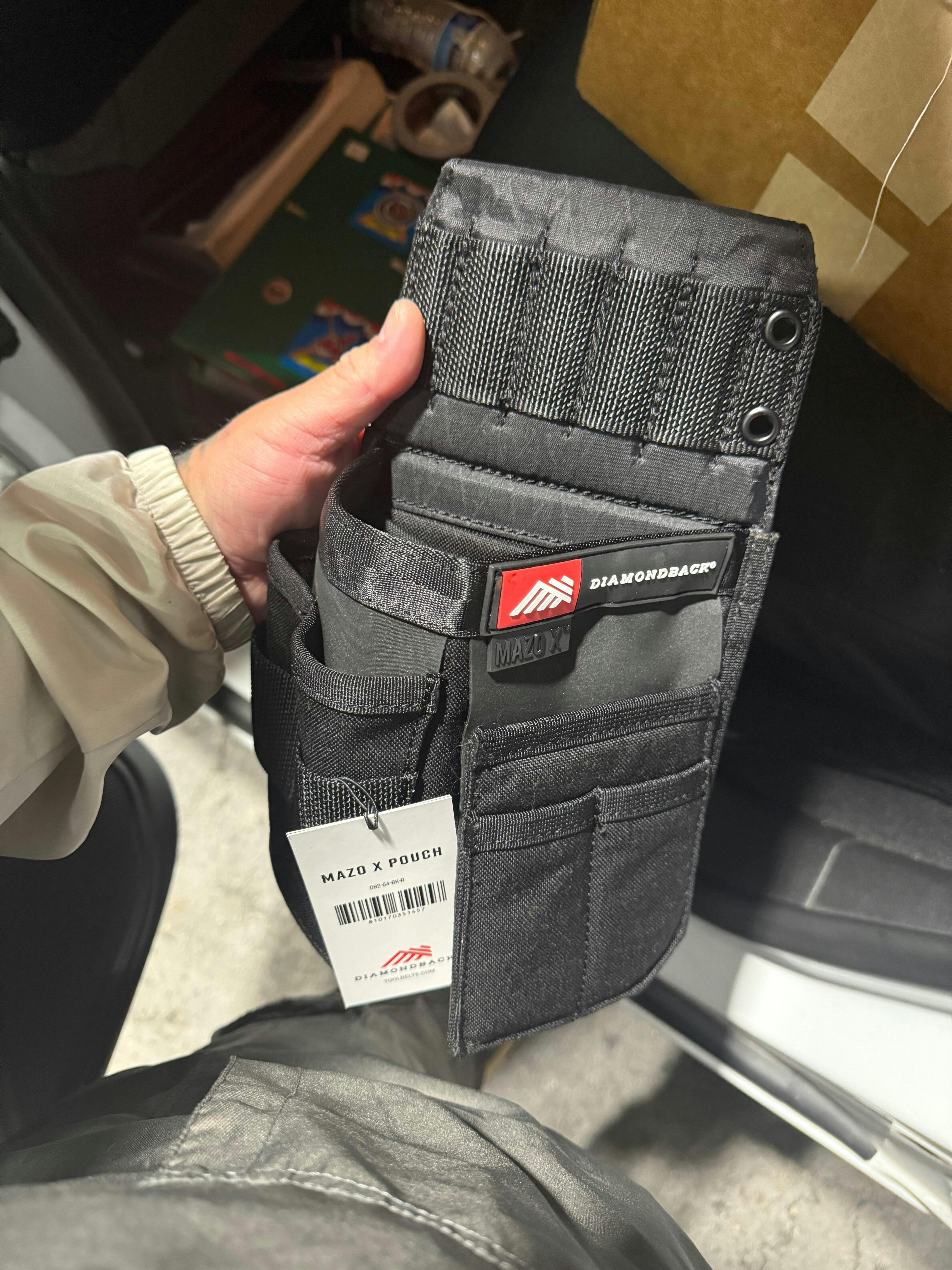 Your perfect compact dominant side companion is here. The Mazo X improves on the groundbreaking design of the classic Mazo pouch. The main pocket stays open for easier access and features a divider and four additional tool slots. Two outer tool slots are perfect for tapered tools and a 4-slot bit index keeps your bits organized. A d-ring is located beneath a generously sized marker/tool pocket. DX9 Tech Fabric on the back won’t cause unwanted abrasion to your pants or legs.